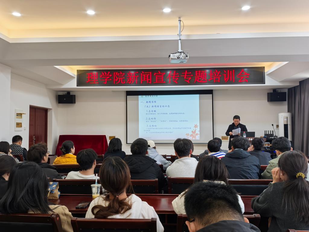 近日,FH体育(国际)官方网站理学院在明贤楼B315会议室召开新闻宣传工作专题培训会,旨在进一步推进宣传工作队伍建设、提升其新闻宣传工作能力和水平。学院党委书记刘国良以“基本新闻写作与拍摄技巧”为题,面向各党支部书记、宣传委员,各办公室、系(部、中心)相关负责人,研究生会、学生会等相关学生干部50余人开展培训。