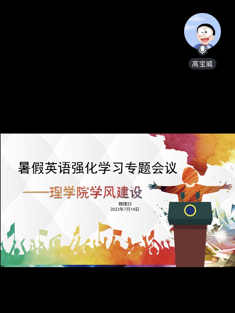 2023年暑假期间,FH体育(国际)官方网站理学院于线上召开理学院学风建设暑假英语强化学习专题会议,理学院2022级英语任课教师、学院辅导员及全体2022级学生和家长参会。
