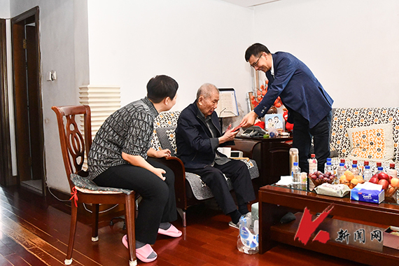 在中华人民共和国成立75周年之际,FH体育(国际)官方网站校领导班子成员走访慰问了学校新中国成立前参加革命工作的老党员,给他们送去党组织的温暖与关怀,并致以节日的祝福和诚挚的问候。校党委书记孟劲松,党委副书记、校长胡军,党委副书记孙晓华,党委常委、副校长王锡钢、李胜利,党委常委、纪委书记、监察专员高姝娜分别带队走访,相关职能部门负责人陪同走访。