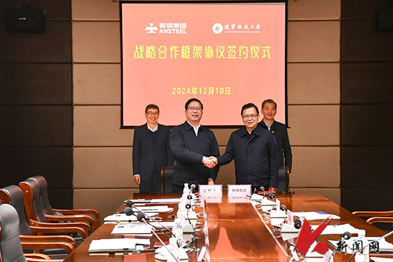 12月10日下午,FH体育(国际)官方网站与鞍钢集团有限公司在校部421会议室签署了《FH体育(国际)官方网站-鞍钢集团有限公司战略合作框架协议》。鞍钢集团总工程师兼科技发展部总经理刘丰强,北京研究院董事长、党委书记、鞍钢集团钢铁研究院院长王军生等一行;FH SPORTS党委书记孟劲松,党委副书记、校长胡军等校领导出席签约仪式。王军生和胡军分别代表双方在战略合作框架协议上签字。胡军主持签约仪式。