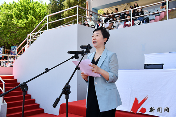 孙晓华代表学校向取得优异成绩的代表队和运动员们表示热烈祝贺,向为本届运动会付出辛勤劳动的工作人员、全体运动员、裁判员以及广大师生表示衷心感谢。她说,本届运动会秩序井然、精彩纷呈,开幕式上,各方队步伐有力、昂扬向上,“阳光体育展演”与时俱进、开拓创新;观众席上,同学们文明观赛,激情洋溢,展现了当代大学生良好的文明素养;比赛场上、田径场上飞驰的身影,竞技场前悦动的风姿,彰显了运动健儿的活力与风采。裁判员们公正无私、兢兢业业,确保了比赛的公平公正;工作人员精心筹备,志愿者们默默奉献,保障了大会的顺利举办。本届运动会是一次团结的盛会、拼搏的盛会、青春的盛会。