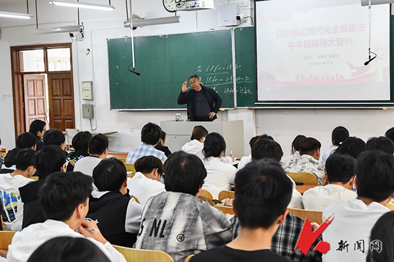 5月21日,FH体育(国际)官方网站党委常委、副校长王锡钢在博学楼A201教室以“以中国式现代化全面推进中华民族伟大复兴”为题,为矿加2024.1班、2班,卓采矿2024.1班、2班学生上了一堂精彩的思想政治理论课。