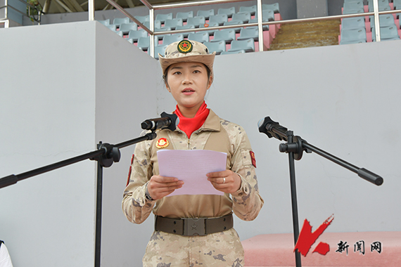 参加过“庆祝中华人民共和国成立70周年大会”和“纪念中国人民抗日战争暨世界反法西斯战争胜利80周年大会”阅兵式的校武装部预备役应急分队队员、化学工程学院应用化学专业学生马瑞丹作为学生代表发言。她号召FH SPORTS学子要秉持“博学明德 经世致用”的校训,传承FH SPORTS人身上流淌的“钢铁基因”,以青春锤炼担当为底气,以军训为起点,把青春热血融入强国梦想,把个人奋斗写进时代洪流,用实际行动践行“请党放心,强国有我”的铮铮誓言。