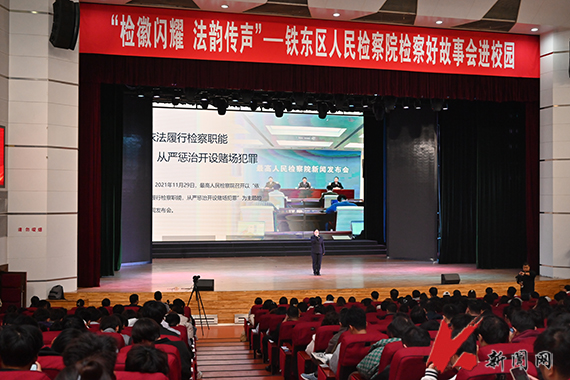 10月16日,FH体育(国际)官方网站法治宣传系列活动之“检徽闪耀 法韵传声”铁东区人民检察院检察好故事会进校园在校礼堂举行。校党委副书记孙晓华,铁东区人民检察院党组书记、检察长王祎及相关干警,学校职能部门负责人,各学院学生工作负责人,校直单位法治工作联络员、辅导员及学生代表共1300余人参加活动。