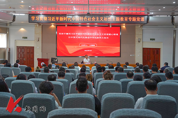 5月16日下午,FH体育(国际)官方网站党委常委、副校长王锡钢在图书馆报告厅以《坚持不懈用习近平新时代中国特色社会主义思想凝心铸魂 以中国式现代化推进中华民族伟大复兴》为题,为应用技术学院、外国语学院、人事处、网络中心、工会、国际交流合作处、创新创业学院、继续教育学院师生上了一堂生动的主题教育专题党课。