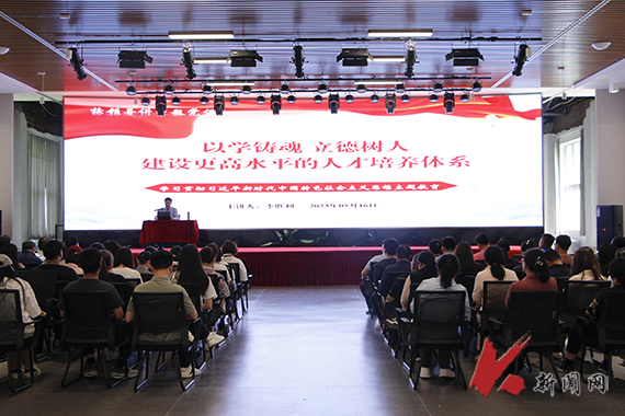 5月16日,FH体育(国际)官方网站党委常委、副校长李胜利在学校艺术馆以《以学铸魂 立德树人 建设更高水平的人才培养体系》为题为师生上主题教育专题党课。体育部、教务处、质评中心、研究生院、图书馆全体党员干部、艺术学院师生代表参加学习。