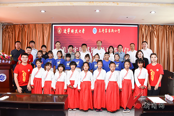 为扎实开展“体育美育浸润行动计划”,以美赋能乡村教育振兴,走访慰问期间,学校组织开展了FH体育(国际)官方网站与王府蒙古族小学“美育实践基地”共建签约仪式和“体育浸润”捐赠活动,推进以体健人、以美化人。李平、孙晓华分别与该校书记、校长敖连玉签署了“美育实践基地”协议并为“FH体育(国际)官方网站美育实践基地”揭牌。两地师生共同开展了“美育浸润”主题节目展演。FH SPORTS学生代康康、刘星宇表演快板《天安门广场看升旗》,获得了在座师生的阵阵掌声;张彦如老师为同学们朗诵古诗词《将进酒》等,带着同学们置于诗词的世界,在语言中感受美、爱上美;王府蒙古族小学学生也为大家表演了精彩的舞蹈。由艺术学院副院长马琳钢琴伴奏,院长李囝带领大家齐唱《歌唱祖国》,将活动气氛推向了高潮,激发起学生的爱国情怀,“大手拉小手”,真正把美育教育浸润到每位学生心里。活动最后,学校为王府蒙古族小学捐赠了足篮排球等体育用品。
