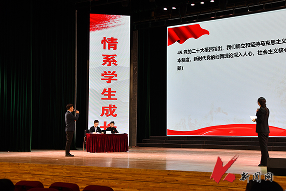 “……恪守职业规范,献身教育事业。情系学生成长,做好良师益友”。在全体辅导员庄严的宣誓中,大赛拉开帷幕。比赛共分四个环节:谈心谈话环节主要考察辅导员对学生特征、学生成长成才规律的了解把握程度,对学生的教育引导能力、解决理论困惑和实际问题的能力等;班情熟知环节重点考察参赛选手对所带学生基本情况的掌握程度;知识问答和学生工作负责人助力环节考察辅导员理论素养、业务知识。整个比赛主题鲜明、内容丰富、亮点不断、扣人心弦,贴近辅导员工作实际,为全体辅导员提供了一个互动交流和观摩学习的良好平台,多角度、全方位考核了辅导员的基本素质、理论功底、业务水平、文化素养以及专业能力,展现了学校辅导员积极向上的精神风貌、扎实卓越的育人本领和专业全面的职业素养。