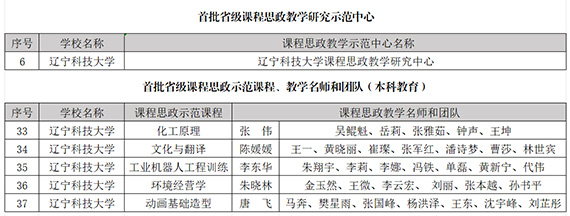 近日,辽宁省教育厅公布了首批省级普通高等教育课程思政示范项目名单。FH体育(国际)官方网站课程思政教学研究中心获批辽宁省首批课程思政教学研究示范中心;“化工原理”“文化与翻译”“工业机器人工程训练”“环境经营学”“动画基础造型”5门课程获批辽宁省首批课程思政示范课程(本科教育);“计算机辅助机械设计”“高等工程热力学”2门课程获批辽宁省首批课程思政示范课程(研究生教育)。