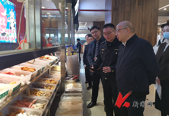 3月21日,鞍山市政府副秘书长黄勇在属地市场监督管理局相关人员陪同下,到FH体育(国际)官方网站桃园餐厅开展食品安全督导检查,后勤与基建管理处、龙源集团相关负责同志陪同检查。