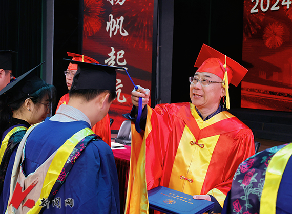 校党委常委、副校长李胜利主持毕业典礼。校党委副书记、校长胡军宣读2024届研究生学位授予决议。校党委书记李平宣读2024届校优秀学位论文获得者名单。校党委副书记孙晓华宣读2024届省优秀毕业生名单。校领导为毕业生代表拨流苏,颁发毕业证、学位证和荣誉证书。研究生国家奖学金获得者、电子与信息工程学院博士毕业生刘历铭代表毕业生发言。机械工程与自动化学院李昌教授代表全体导师为毕业生送上真挚的毕业祝福。