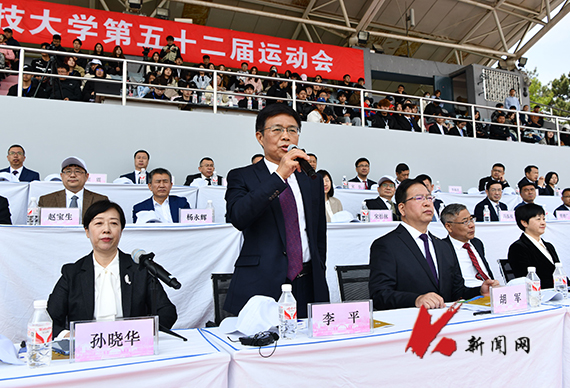 致词中,胡军代表学校党政,对第五十二届运动会的胜利召开表示热烈的祝贺,向精心组织筹备本次运动会的工作人员表示衷心的感谢,向全体运动员、教练员、裁判员、志愿者及广大师生员工致以诚挚的问候。