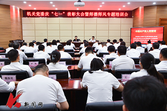 6月28日上午,FH体育(国际)官方网站机关党委在校部220会议室举办庆“七一”表彰大会暨师德师风专题培训会。校党委副书记孙晓华出席会议并致词。机关党委委员、各党支部书记及副处级以上领导干部、职工代表参会。