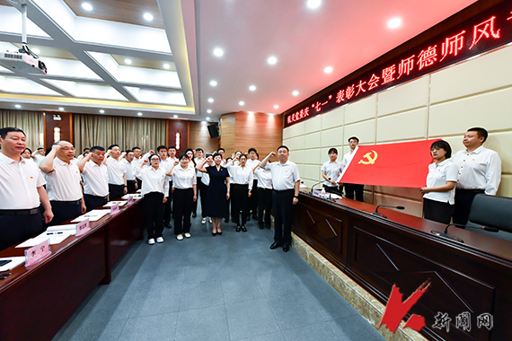 孙晓华为获奖的党支部和个人颁奖,并号召全体党员要从先进典型中凝练拼搏精神,从优秀事迹中汲取奋进力量,进一步激发推动学校高质量发展的强大动力。她在回顾党的光辉历程、总结学校瞩目成绩时表示,过去的三年,机关各党支部和广大党员干部充分发挥战斗堡垒作用和先锋模范作用,革故鼎新、勇于担当、甘于奉献,以高质量党建引领推动了学校事业高质量发展。