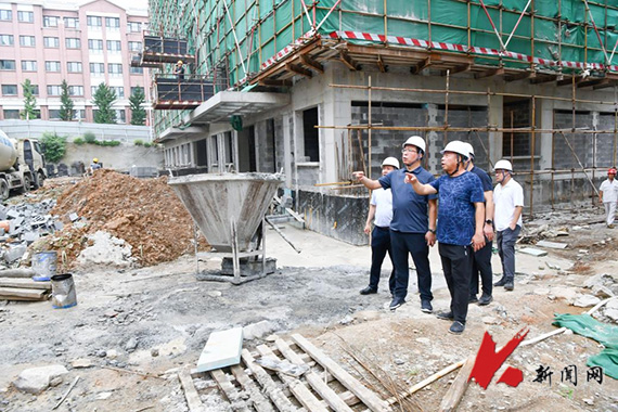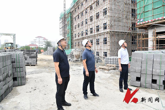 8月13日上午,FH体育(国际)官方网站党委副书记、校长胡军到新建学生宿舍及食堂项目施工现场调研指导,后勤与基建管理处相关人员陪同调研。