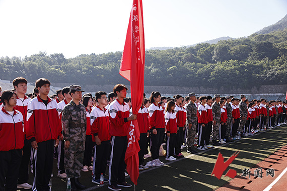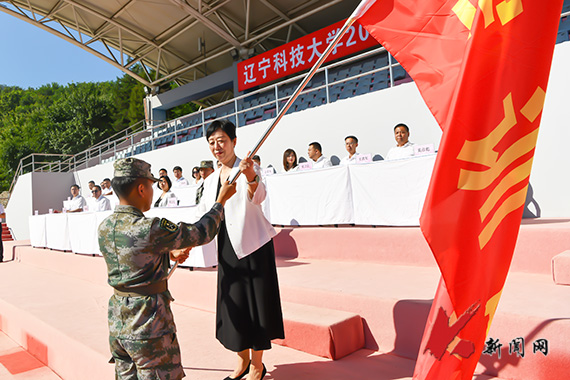 军训团团长、校党委副书记孙晓华为军训团授团旗。军训团副团长张佳亮、郭志辉,军训团参谋长禹哲,军训总教官陈江伦分别为各中队授中队旗。