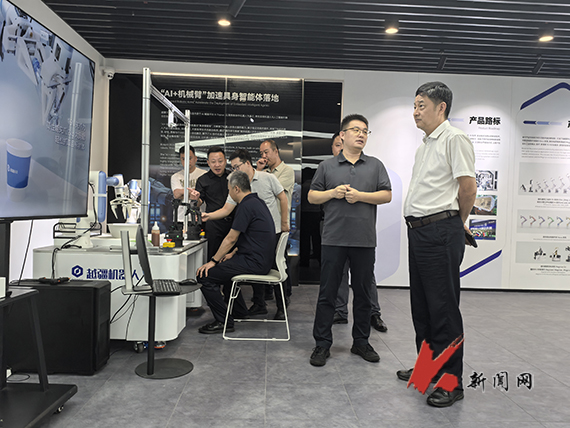 越疆公司教育事业部总经理李晓亮陪同李胜利参观企业,并对公司智能协作机器人产品进行详细介绍。李胜利从功能、性能、应用领域系统解决方案等角度详询相关信息,对企业在智能协作机器人领域以核心技术创新驱动发展方面取得的成果高度赞赏,并对企业在产学合作协同育人方面的措施与成效进行了重点了解。