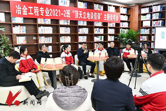 11月27日下午,FH体育(国际)官方网站“顶天立地谈信仰”主题读书会暨为大学生上思想政治理论课在学校图书馆经典阅读空间举办,校党委书记孟劲松走进对接班级材料与冶金学院冶金工程2021.2班开展读书分享,学校党政办公室、党委学生工作部、图书馆负责人,材冶学院班子成员、全体辅导员、冶金工程专业2021.2班全体学生参加读书会。《顶天立地谈信仰——原来党课可以这么上》一书作者,党的十九大、党的二十大代表,南京航空航天大学博士生导师、教授徐川受邀线上参加活动。