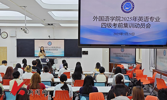 5月29日,FH体育(国际)官方网站外国语学院在博学楼C206召开2025年英语专业四级考前集训动员会,学办负责人、英语专业负责人、英语2023级全体学生参会。