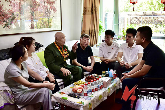 7月30日,FH体育(国际)官方网站机械工程与自动化学院联合鞍山市军休中心关工委共同走进功勋老兵贾恒贤家中,开展“传承红色基因 青春追逐梦想”走访慰问活动。师生党员们送上承载感恩与祝福的鲜花和慰问品,现场聆听老兵讲述抗美援朝的故事。