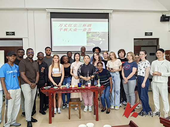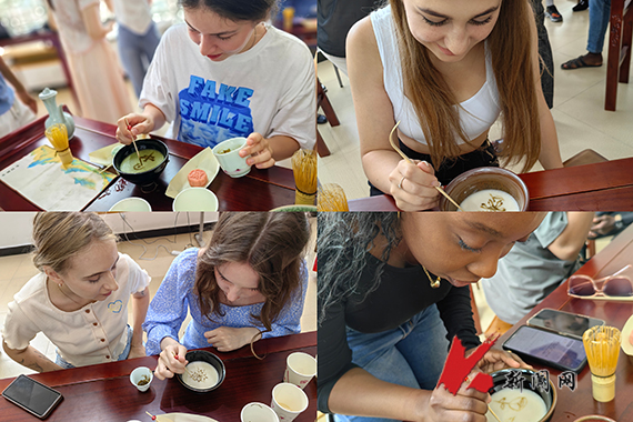 在认真观看学习了选茶、烧水、温壶、置茶到点汤、分茶等一系列茶艺流程后,同学们在专业教师的指导下纷纷动手尝试点茶。他们拿起茶筅,在茶碗中搅拌茶汤,体验着中国茶文化的独特韵味。来自俄罗斯的如雪同学说:“我很喜欢中国茶。中国茶道强调静心、修身,在制茶的过程中,我能够感受到内心的宁静和放松。”