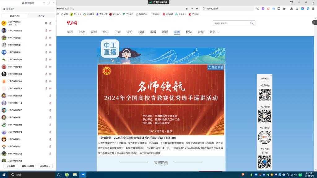学院工会组织青年教职工观看“名师领航”2024年全国高校青教赛优秀选手巡讲活动