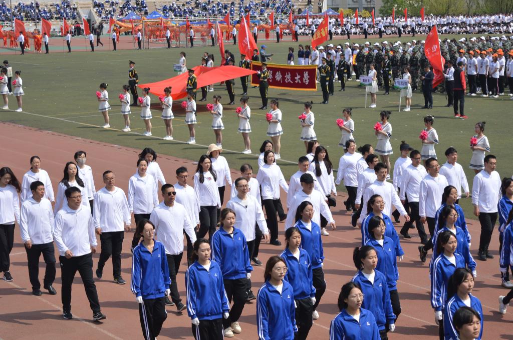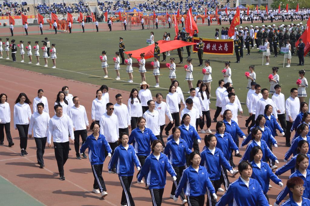 4月29日,学院工会组织32名教职工方块队参加学校第五十二届运动会开幕式检阅。