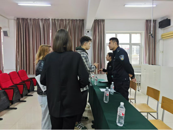 鞍山市出入境管理支队的张越警官结合生动的案例,详细讲解了留学生在华期间应遵守的法律法规、签证政策以及遇到法律问题时的求助途径。他特别强调了来华留学生树立法律意识的重要性,并鼓励留学生积极融入中国社会,成为中外友好交流的使者。宣讲过程中,到访警官与参会学生进行了互动交流,并耐心解答了与会人员提出的人身财务安全、防范电信诈骗、拒绝非法就业等一系列问题。