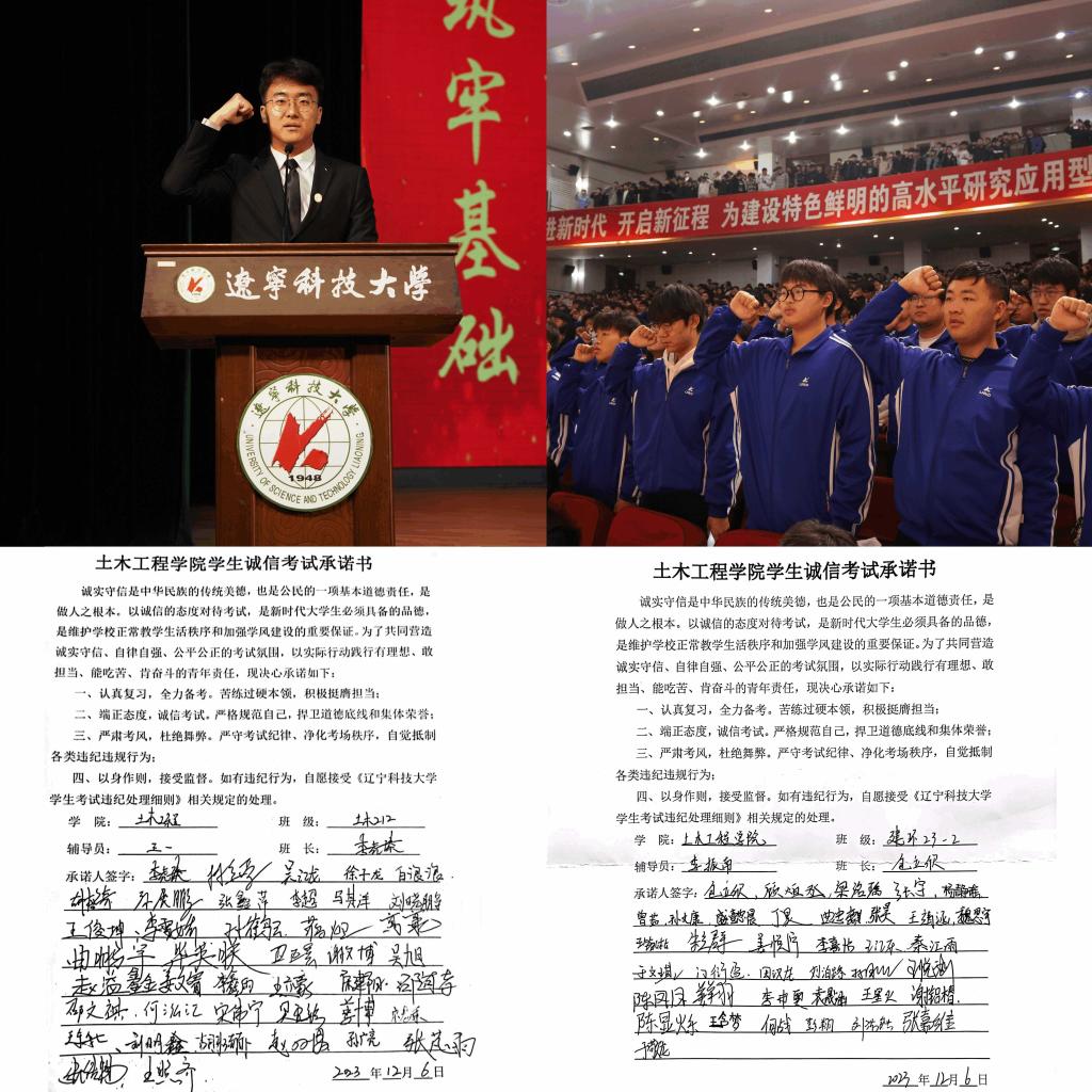 2023年12月8日,学院召开学风建设表彰大会暨教风学风建设启动会,学院院长周卫红作题为《教风学风联动,提高学生培养质量》动员讲话,高华国副院长作题目为《潜心教书、用心育人,将教风促学风向纵深推进》的“三全育人”经验分享,院学生会执行主席徐浩哲带领全体同学宣读《诚信考试承诺书》,学院1391名本科生签署的承诺书在大屏幕滚动。12月19日,学院面向全体教职工召开期末考试培训暨工作布置会,规范考试过程管理,强化监考教师的责任意识。2023年12月2024年1月,学院全体辅导员和班主任(学业指导教师)面向学院38个本科生班级召开诚信考试动员主题班会,解读了《FH体育(国际)官方网站学生考试违纪处理细则》《FH体育(国际)官方网站2023-2024 学年第一学期期末考试考生注意事项》等相关文件精神,并以实际案例向同学们强调考试注意事项及违纪、作弊行为的严重后果,号召同学们遵守考场规则。除此之外,学院注重发挥党员先锋模范作用和团学骨干示范引领作用,召开寝室“先锋岗”成员和团学骨干诚信考试动员会,通过学生党员“亮牌考试”等形式,真正践行做表率、带好头的承诺,积极营造风清气正的考场环境。