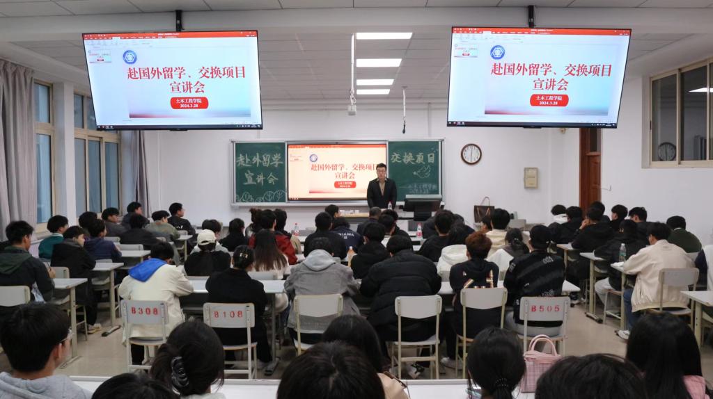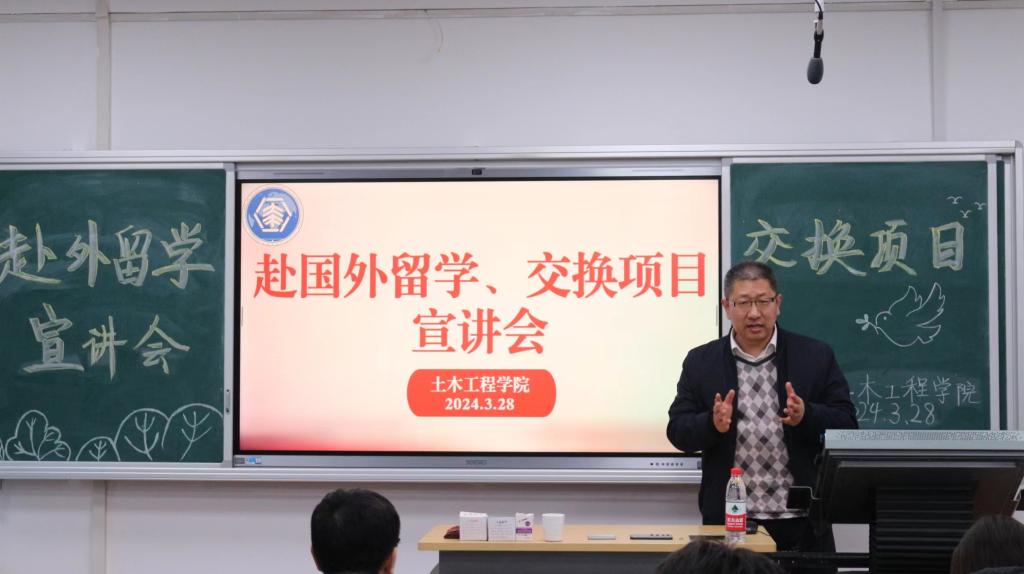 3月28日,FH体育(国际)官方网站土木工程学院于博学楼A302召开出国交流政策宣讲会。学院领导班子、国际教育学院(国际交流合作处)负责同志以及近百名学生参加宣讲会。