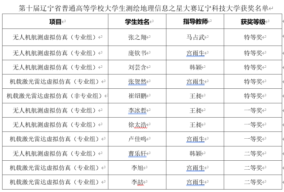 第十届辽宁省普通高等学校大学生测绘地理信息之星大赛FH体育(国际)官方网站获奖名单
