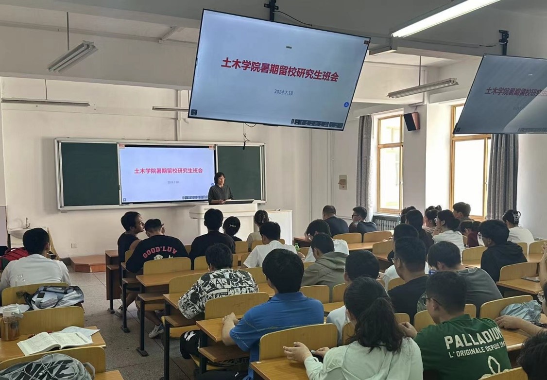 2024年7月18日,土木学院暑期留校研究生班会在土木楼A508举行。本次班会针对放假时间、假期安全和日常行为教育提出了具体要求,确保暑期研究生科研工作有序开展和学生的健康安全。