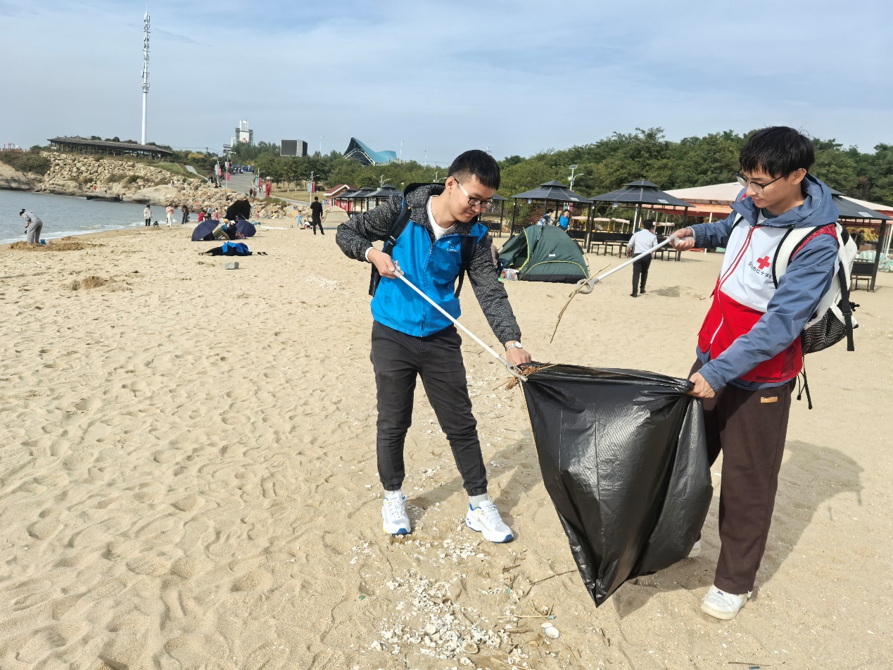 10月13日,FH体育(国际)官方网站土木工程学院“砼学社”与盖州红十字敬老助学志愿服务队在辽宁团山国家级海洋公园联合开展了“净滩志愿同行 共护银沙碧海”志愿服务活动,为保护沙滩环境贡献力量。