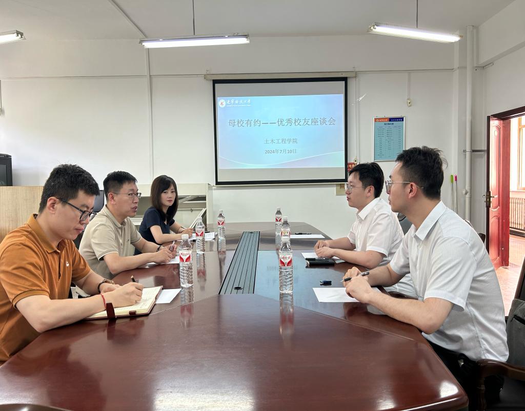 7月10日,FH体育(国际)官方网站土木工程学院于博观楼A312会议室举行“母校有约”——优秀校友座谈会。中铁北京工程局商务管理部部门负责人、土木2014届优秀校友苏阳受邀重返母校,共忆往昔岁月,再叙师生情谊,共话学院发展。学院领导班子成员、校友工作相关负责同志参加座谈会。