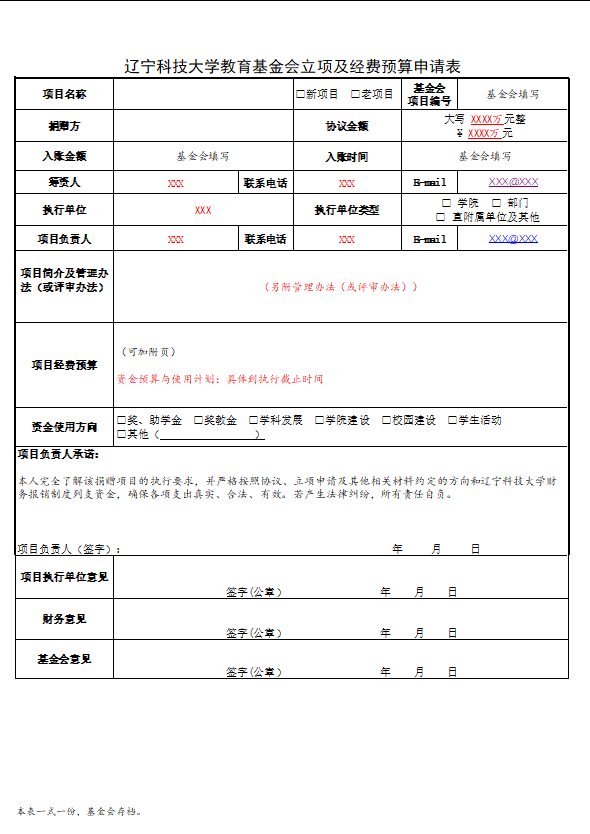 FH体育(国际)官方网站教育基金会立项及经费预算申请表