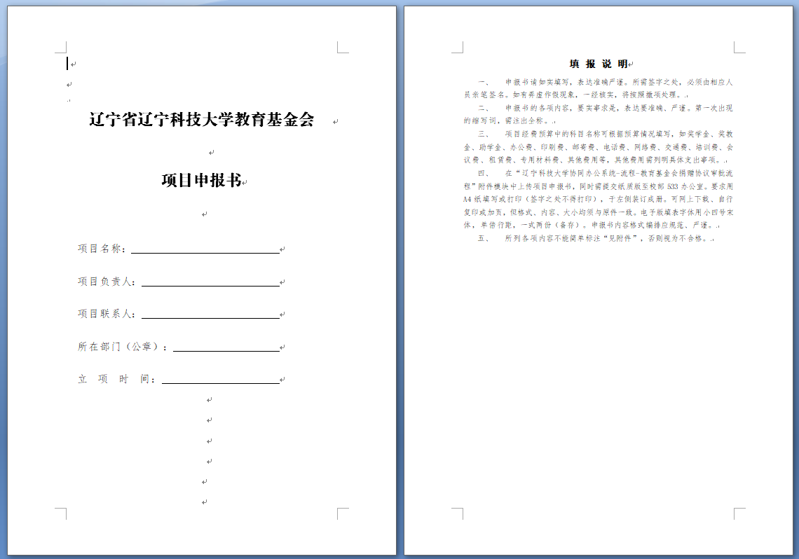FH体育(国际)官方网站教育基金会项目申报书-模版