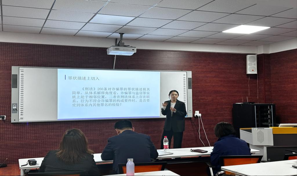 为进一步营造良好的学术氛围、增进研究生的学术素养、提升研究生的科研水平,10月31日,经济与法律学院以“以法为盾,创新先行“为主题开展研究生学术报告会,本次报告会在博识楼A407顺利召开,学院副院长邵玲、法律系主任蒋喆、法硕中心主任武婷婷担任本次学术报告会评委。
