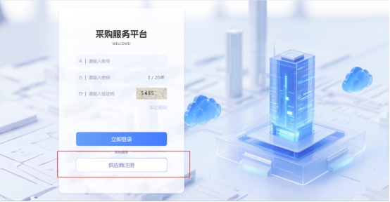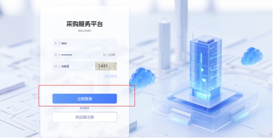 返回采购服务平台登录页,输入注册的账号密码、验证码等,点击“立即登录”(如下图)。
