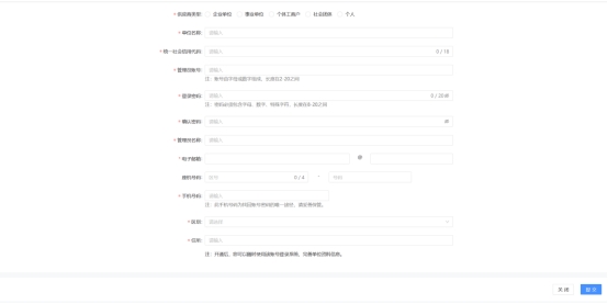 供应商填写注册的相关的信息,填写完成提交即可。